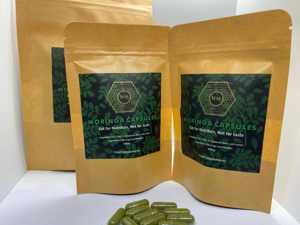 Moringa Capsules Organic 60 Capsules (18000mg) with 200mg extra in each capsule deliver the ultimate dose of nature’s nutrients. Crafted from the nutrient-rich leaves of the Moringa tree, these capsules are packed with essential vitamins, minerals, and antioxidants. Known as the “miracle tree,” Moringa supports immunity, enhances energy levels, and promotes vitality. It helps regulate blood sugar, aids digestion, and improves skin and hair health. Moringa Capsules offer a simple yet powerful way to nourish your body and achieve balance, all in convenient capsule form.